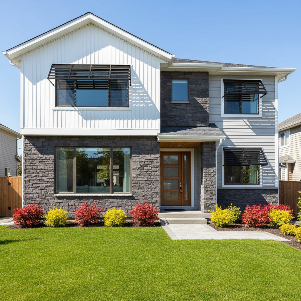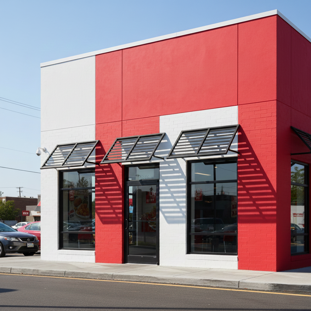 The Bahama Fixed Awning brings the look of classic island shutters to homes, shops, cafés, offices, and multifamily properties. Its angled louver-style design adds character while providing reliable shade, airflow, and weather protection.