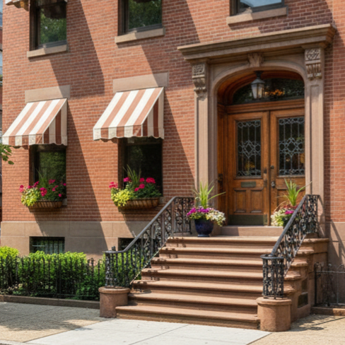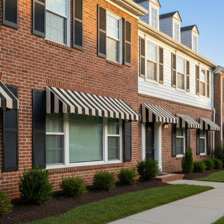The San Francisco Fixed Awning offers the clean, simple slope of the New Yorker Fixed Awning but with a soft, flowing valance for added character. It provides reliable coverage for doors, windows, storefronts, cafés, multifamily buildings, and commercial spaces while delivering a classic look that works with nearly any architectural style.